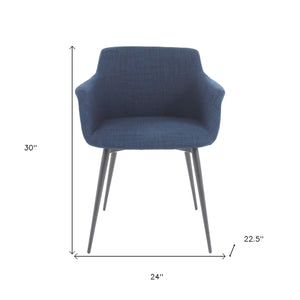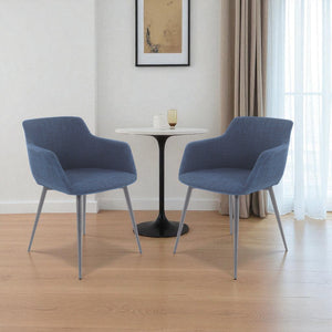 Set of Two Blue and Silver Upholstered Fabric Dining Arm Chairs