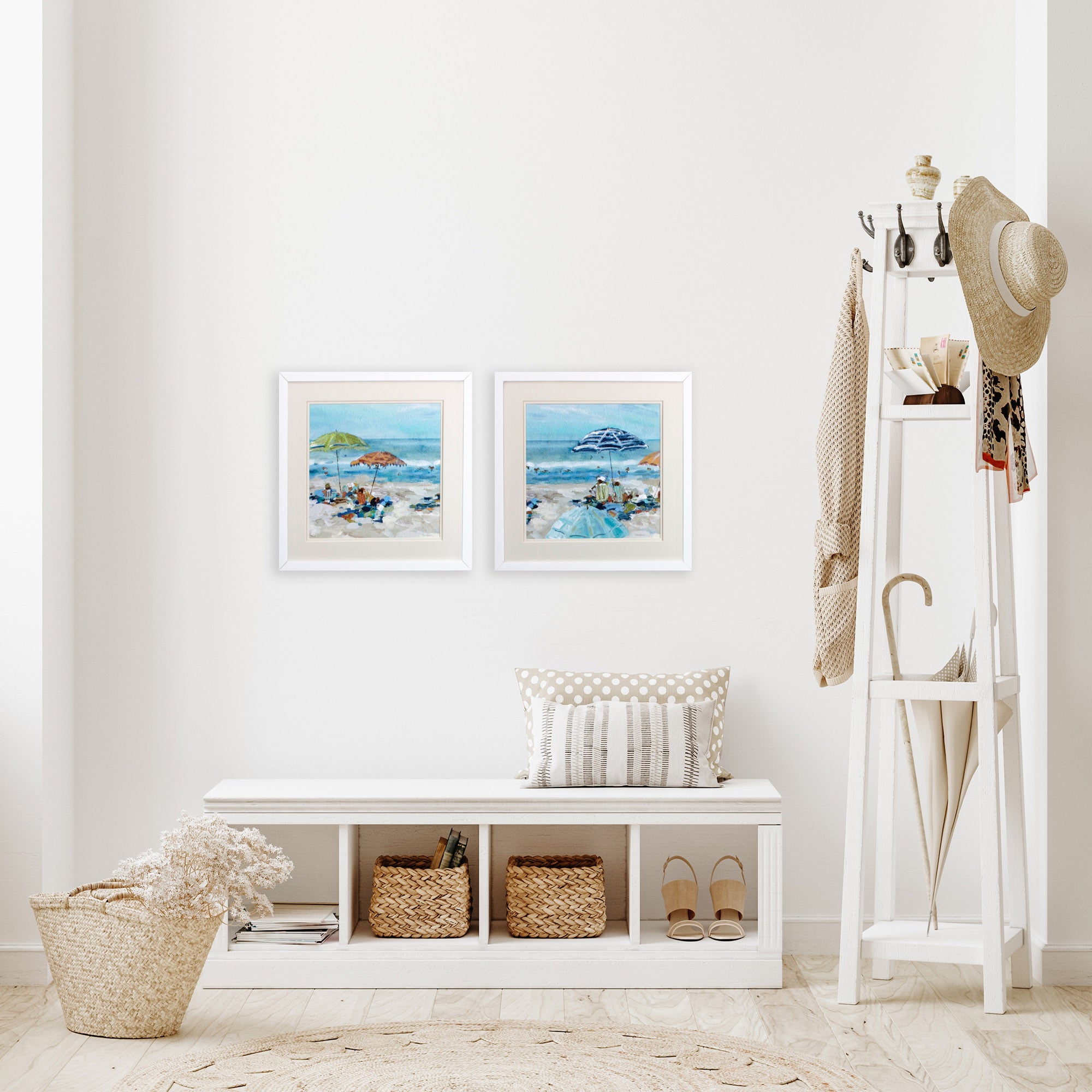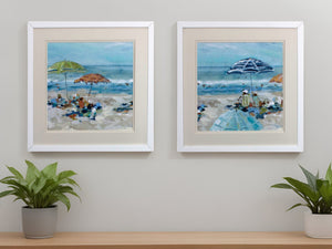 Set of Two Blue Day At The Beach Square Framed Art