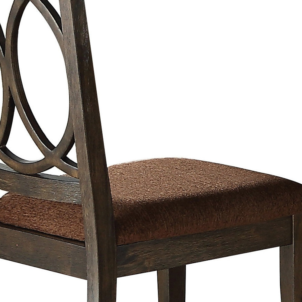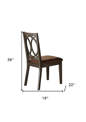 Set of Two Brown And Espresso Upholstered Fabric Open Back Dining Side Chairs