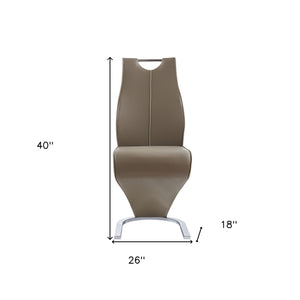 Set of Two Brown and Silver Upholstered Faux Leather Dining Parsons Chairs