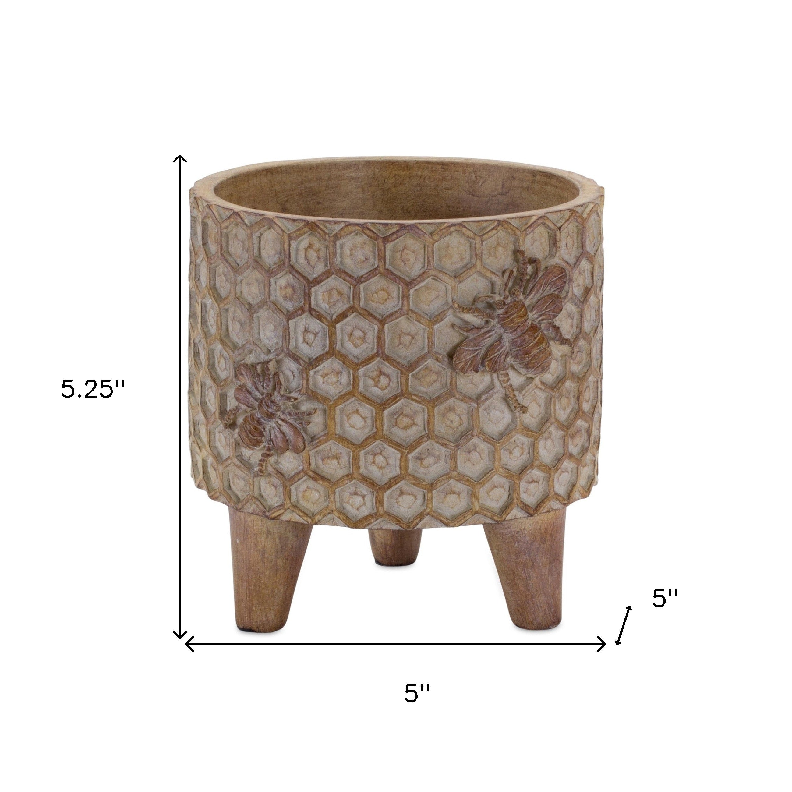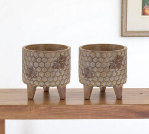 Set of Two Brown Polyresin 3 Ounce Bumble Bee Pot Planters