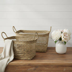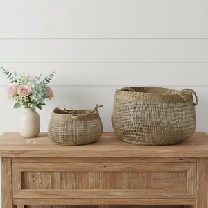 Set of Two Brown Wicker Basket