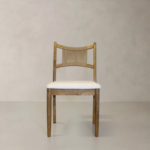 Set of Two Cream and Natural Fabric and Wood Partially Open Back Dining Side Chairs