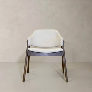 Set of Two Cream and Walnut Fabric and Wood Partially Open Back Dining Arm Chairs