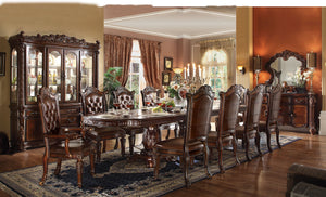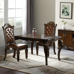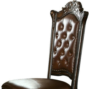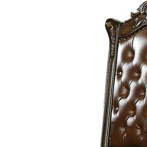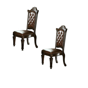 Set of Two Dark Brown and Mahogany Tufted Faux Leather and Solid Wood Dining Side Chairs