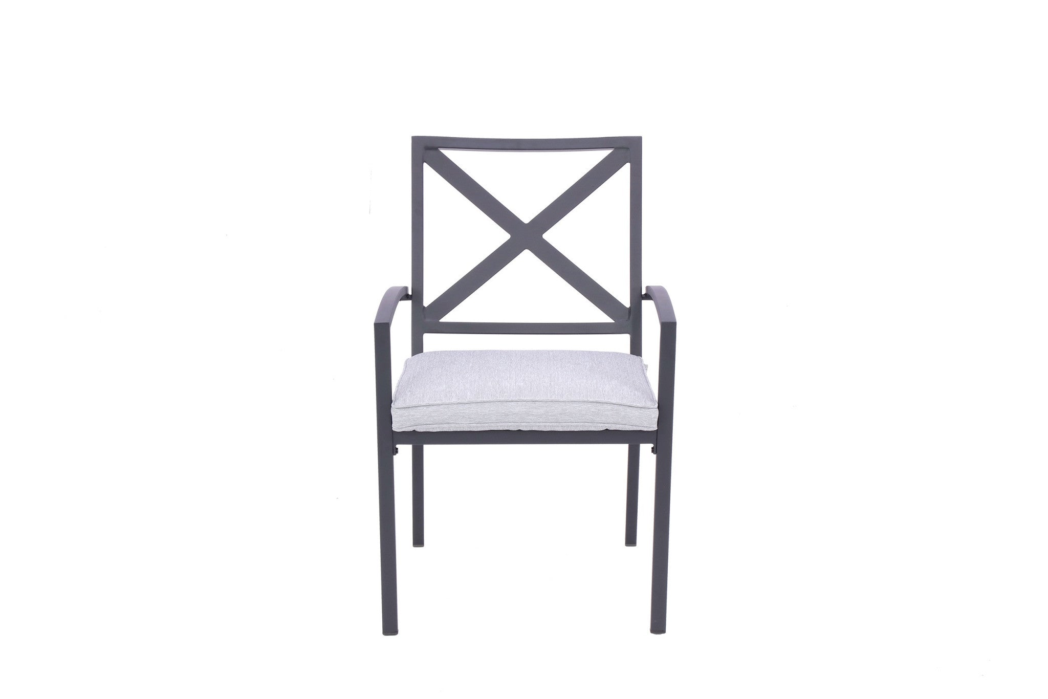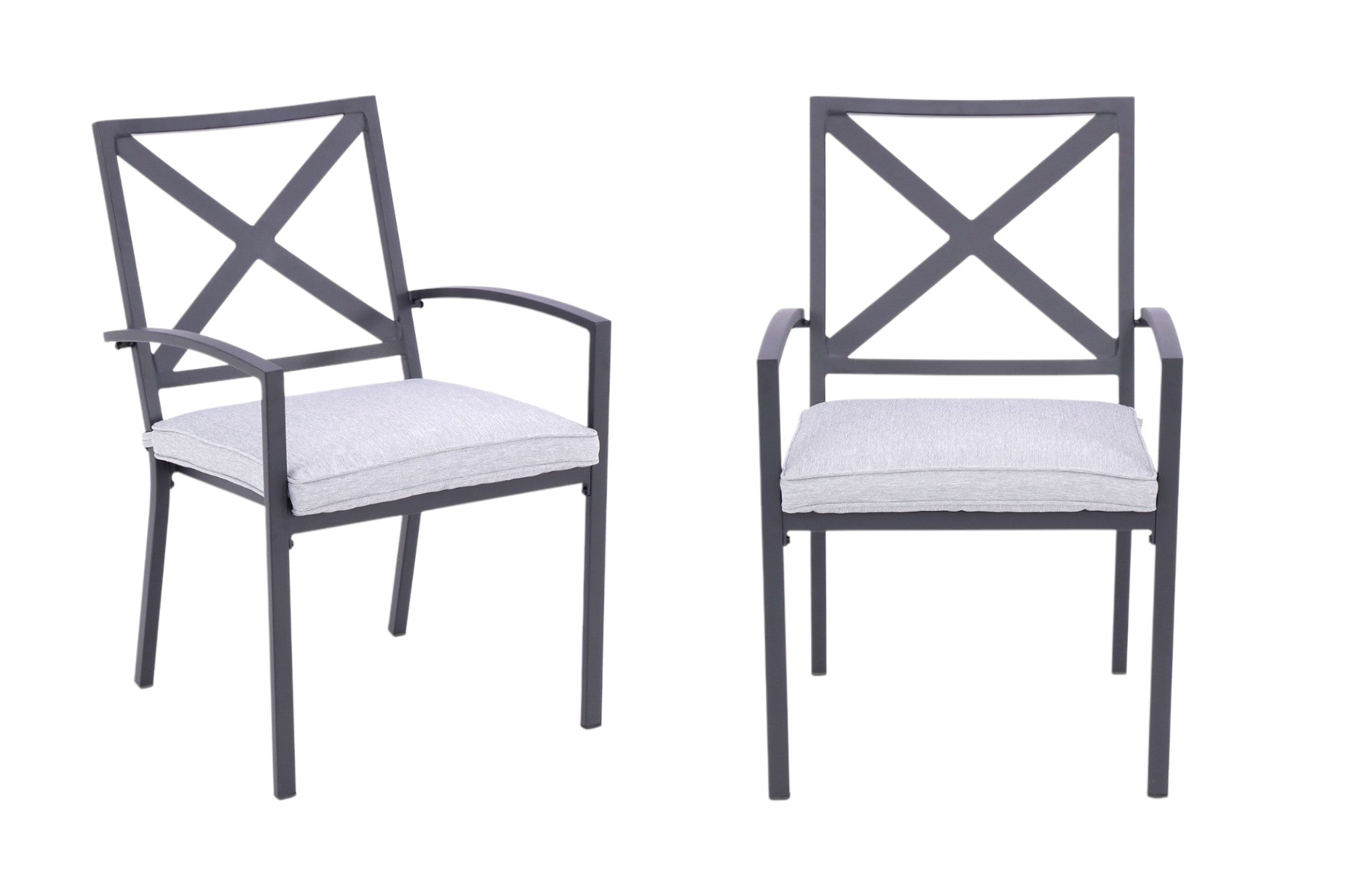 Set of Two Dark Gray Aluminum Outdoor Stacking Dining Chairs with Light Gray Cushion
