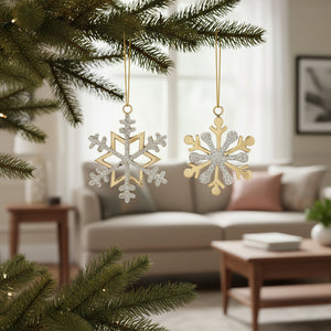 Set of Two Gold And Silver Metal Snowflake Shaped Ornaments