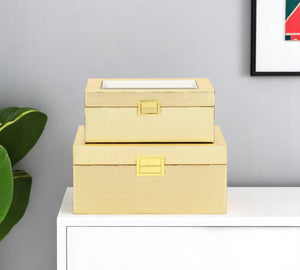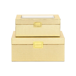 Set Of Two Gold Faux Leather And Mirrored Glass Jewelry Boxes