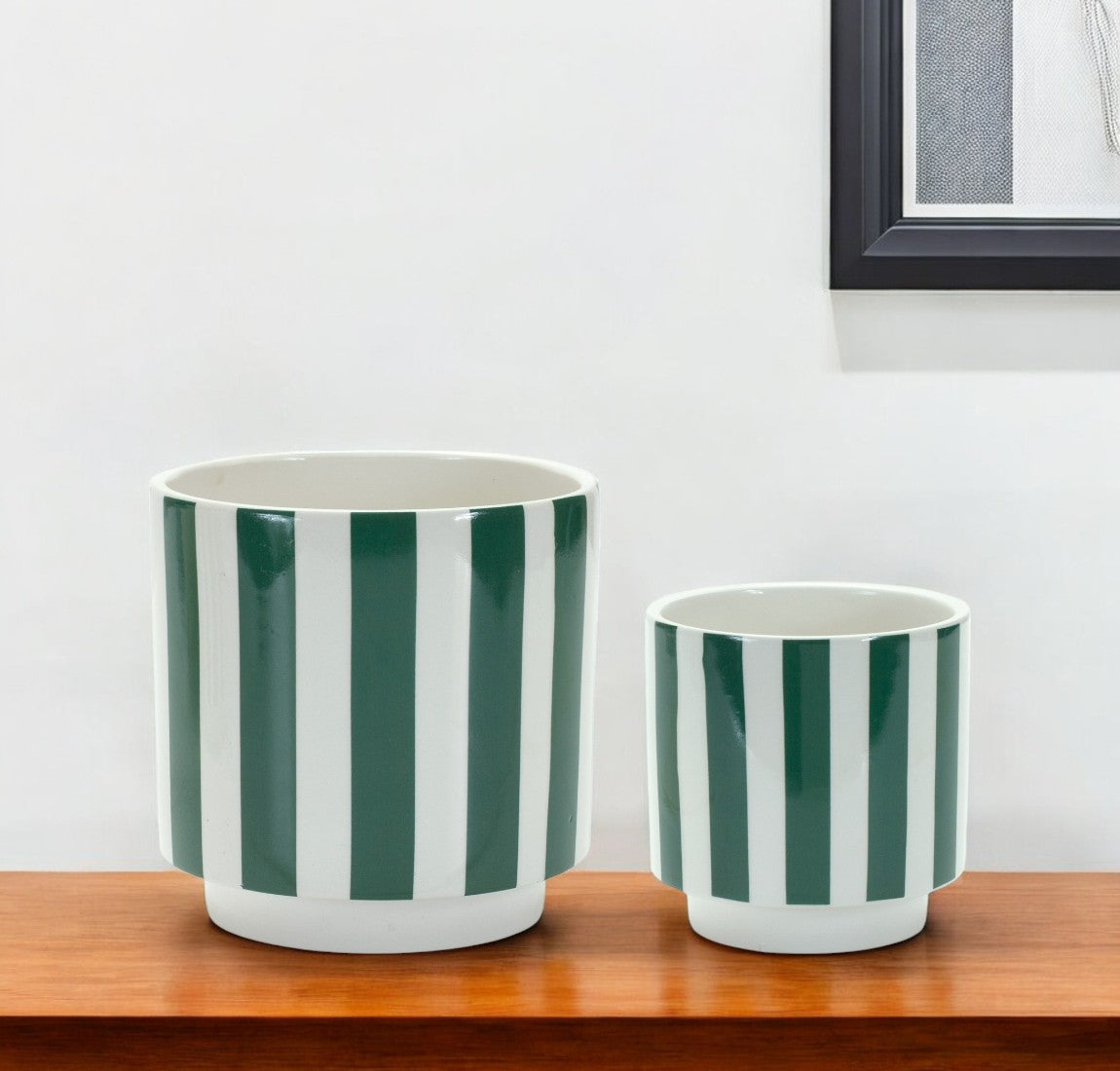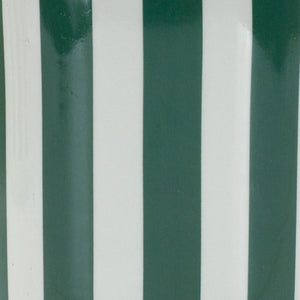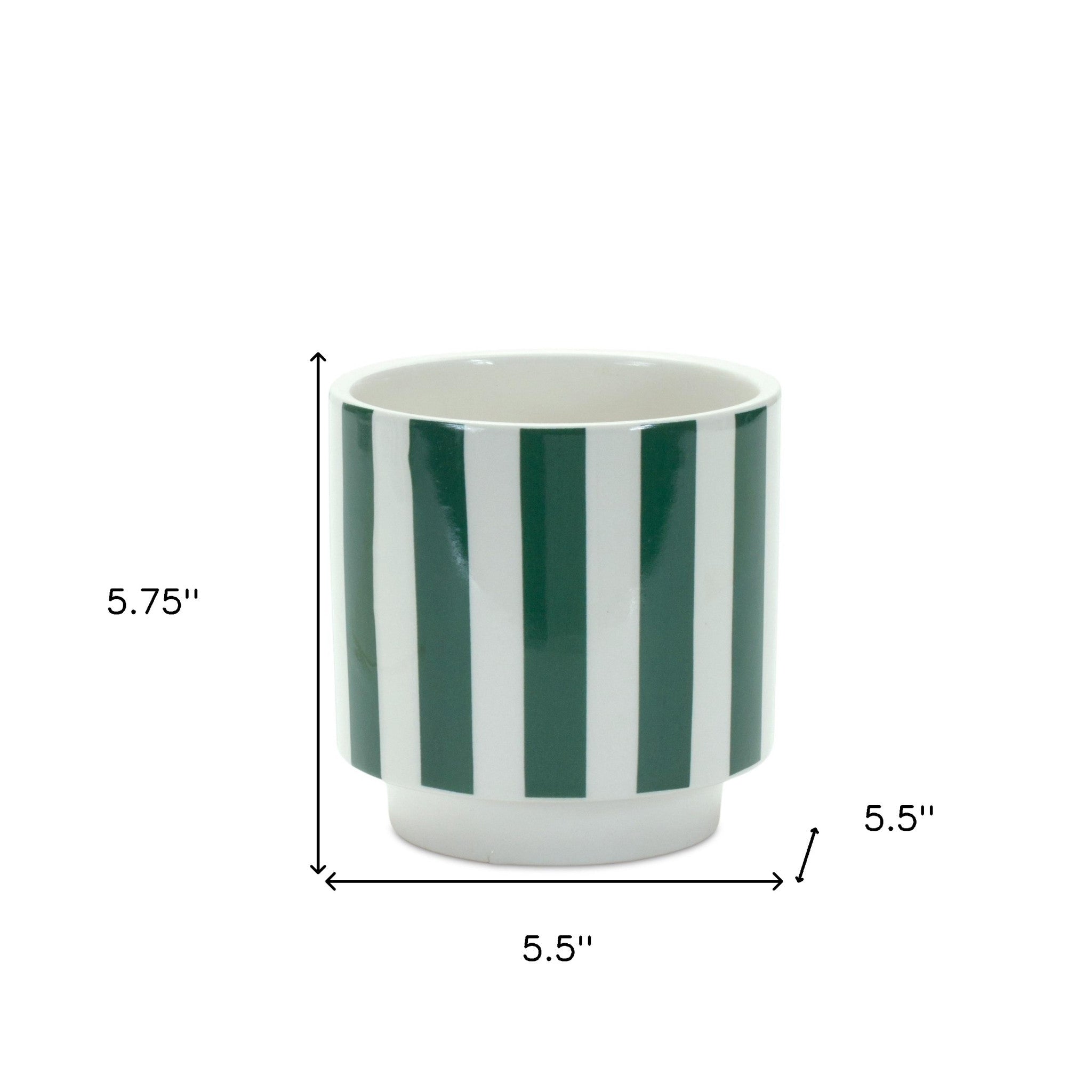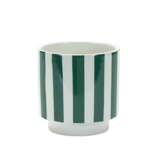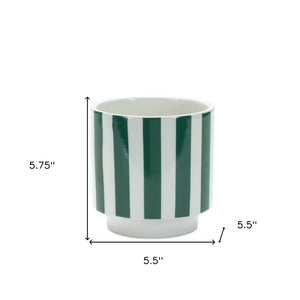 Set of Two Green And White Dolomite Striped 4 Ounce Round Pot Planters