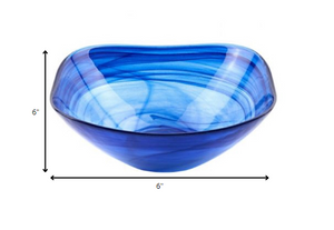 Set Of Two Modern Soft Square Blue Swirl Glass Bowls