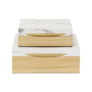Set Of Two Natural And White Faux Marble And Wood Jewelry Box