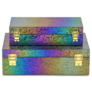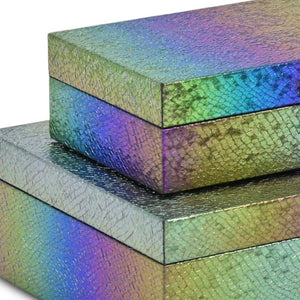 Set of Two Rainbow And Gold Faux Shagreen Nesting Storage Boxes With Lids