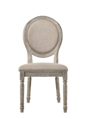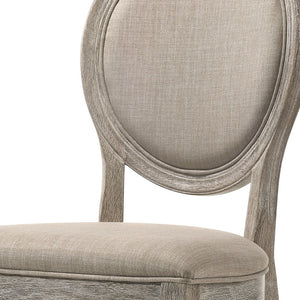 Set of Two Tan and Oak Upholstered Fabric King Louis Back Dining Side Chairs