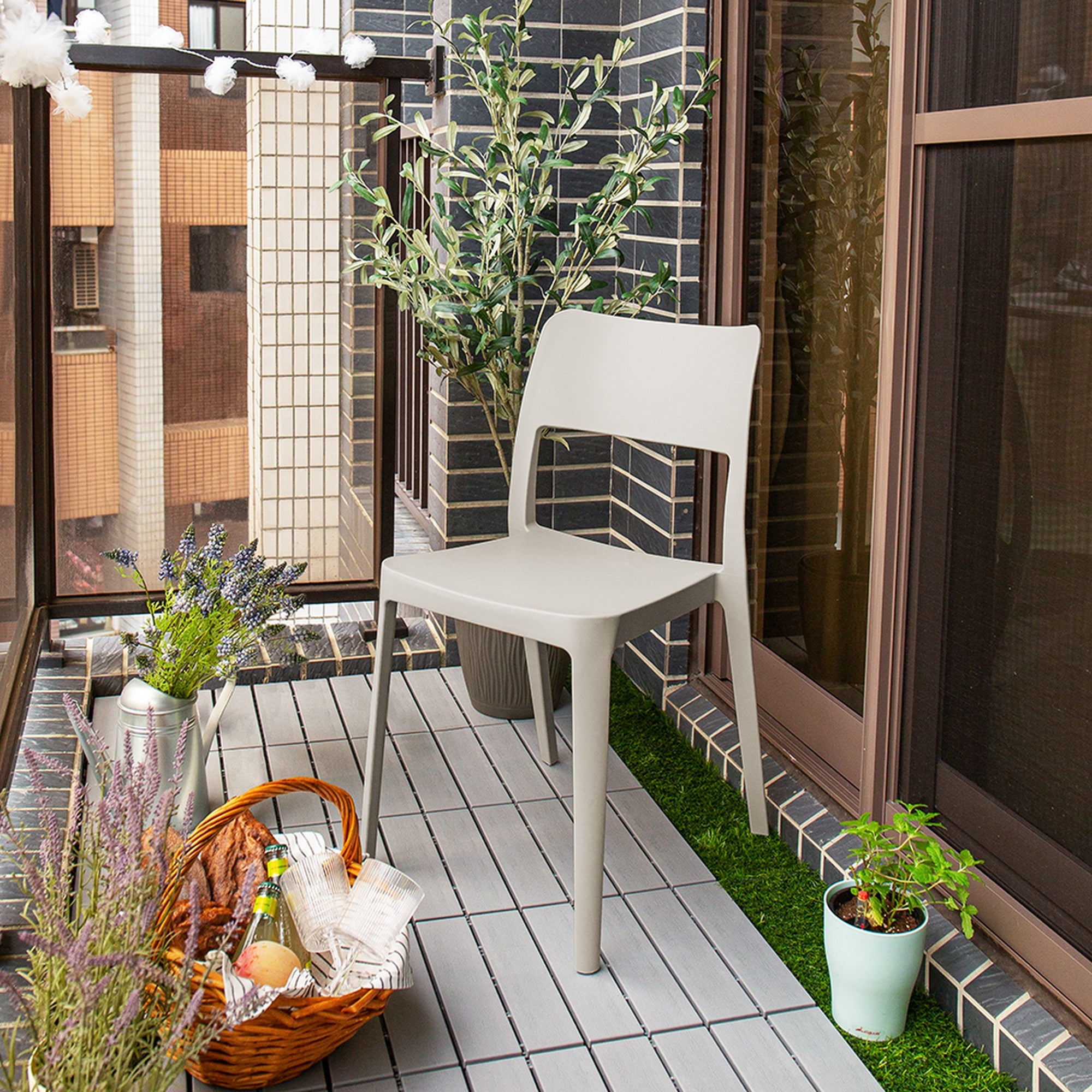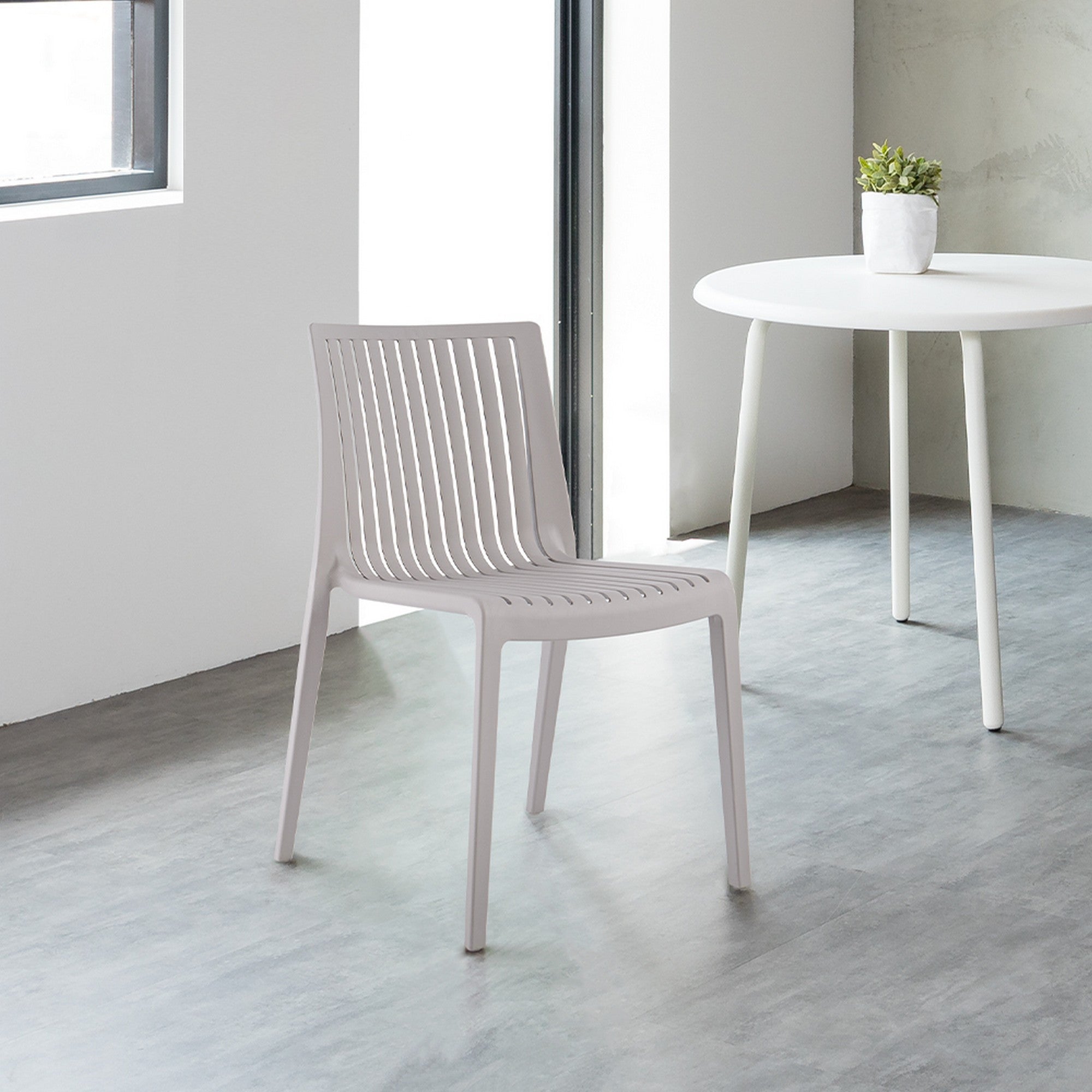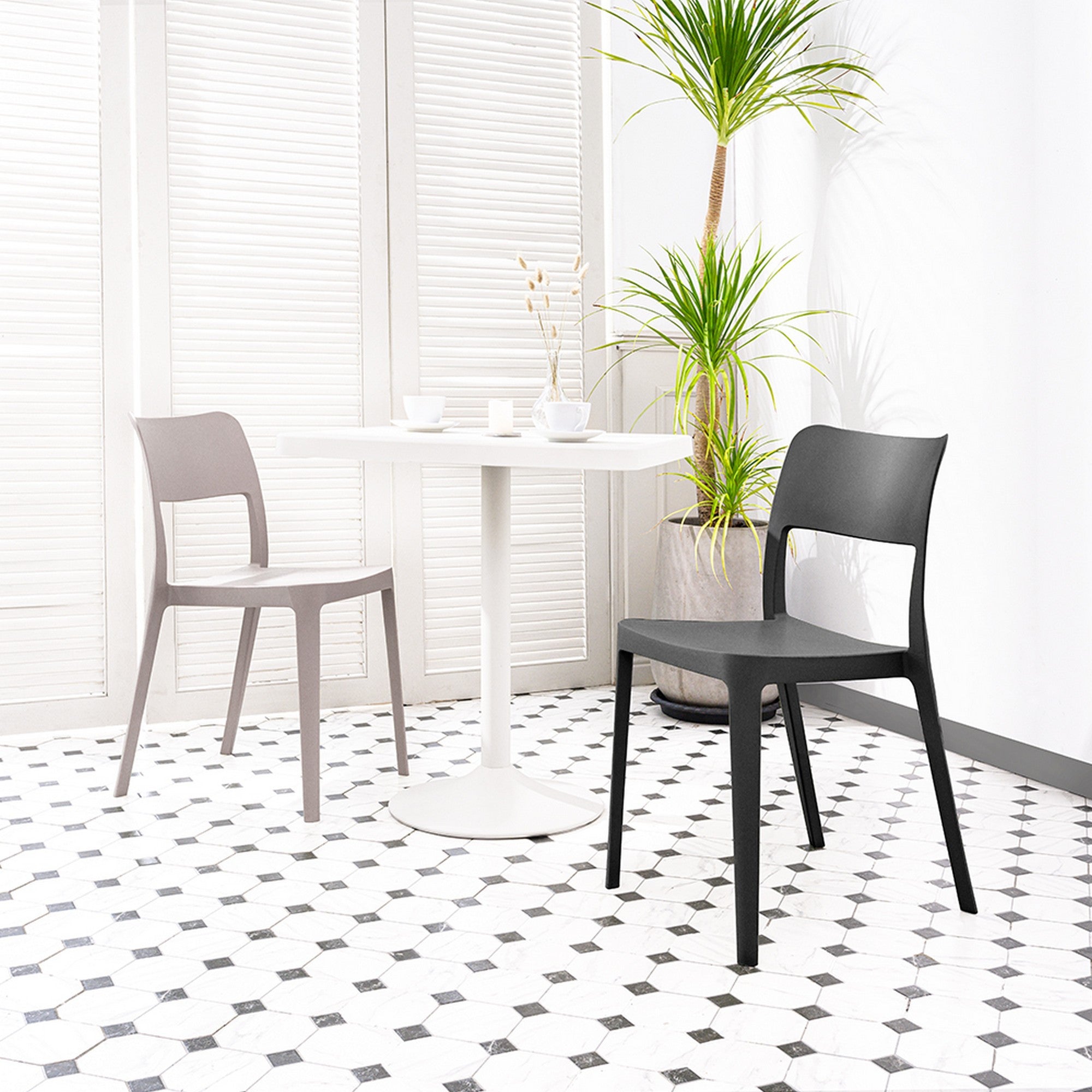 Set of Two Taupe Heavy Duty Plastic Outdoor Stacking Accent Chairs