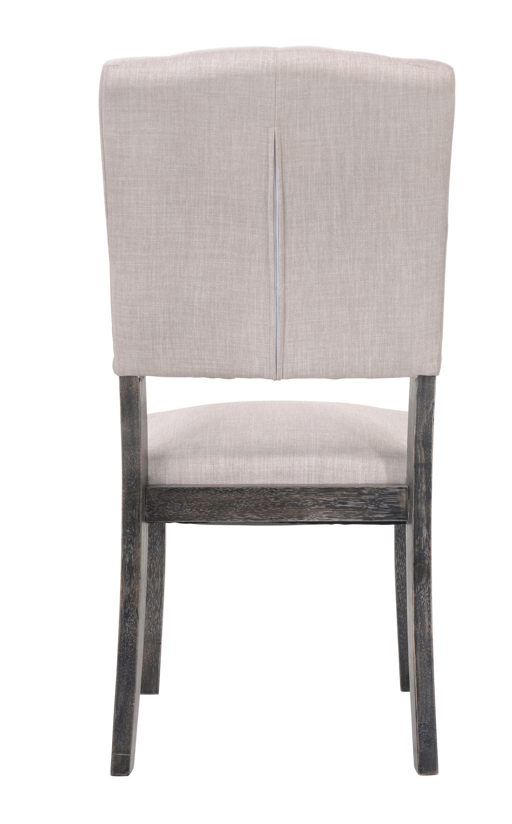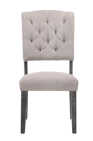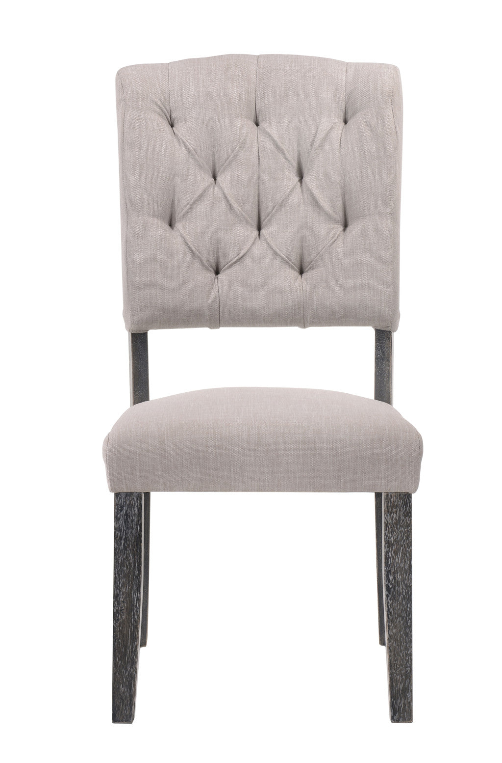 Set of Two Tufted Gray Upholstered Linen And Solid Wood Open Back Dining Side Chairs
