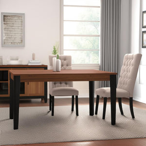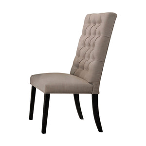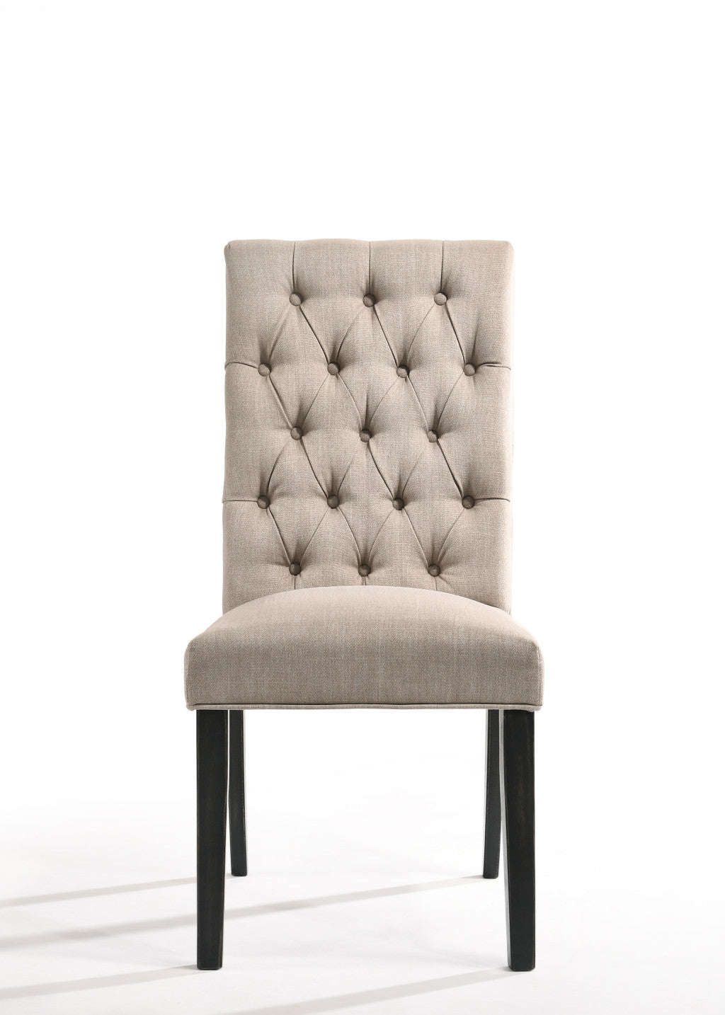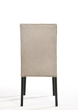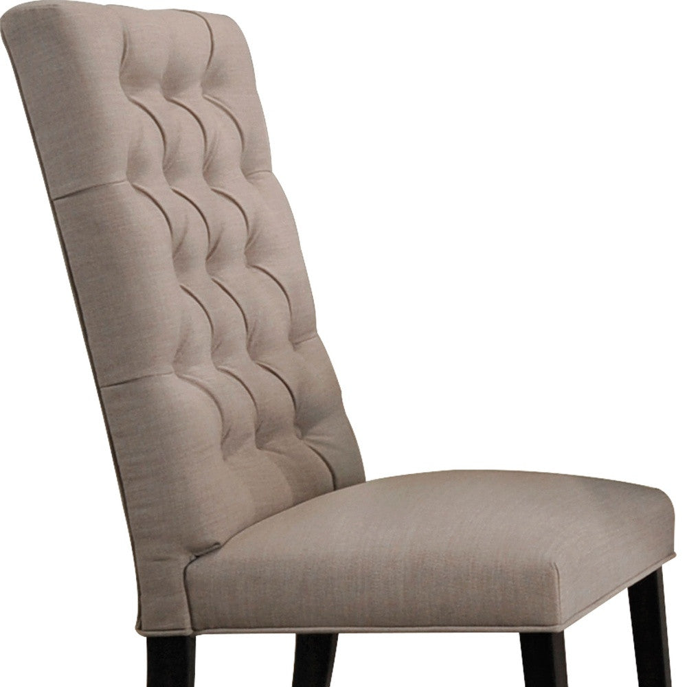 Set of Two Tufted Tan And Black Upholstered Linen Open Back Dining Side Chairs