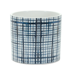 Set of Two White And Blue Ceramic Lattice 2 Ounce Round Pot Planters