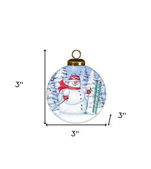 Ski Snowman Hand Painted White Blue And Red Glass Ball Ornament