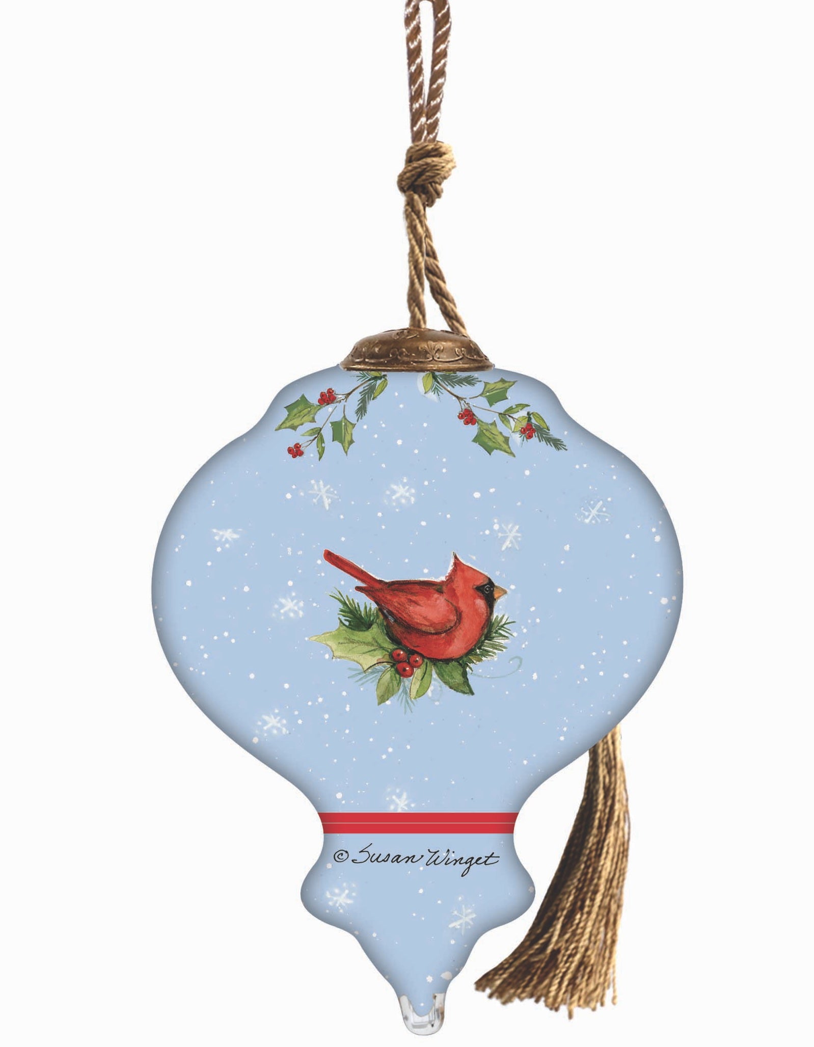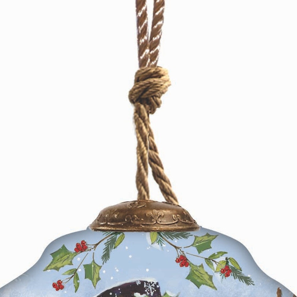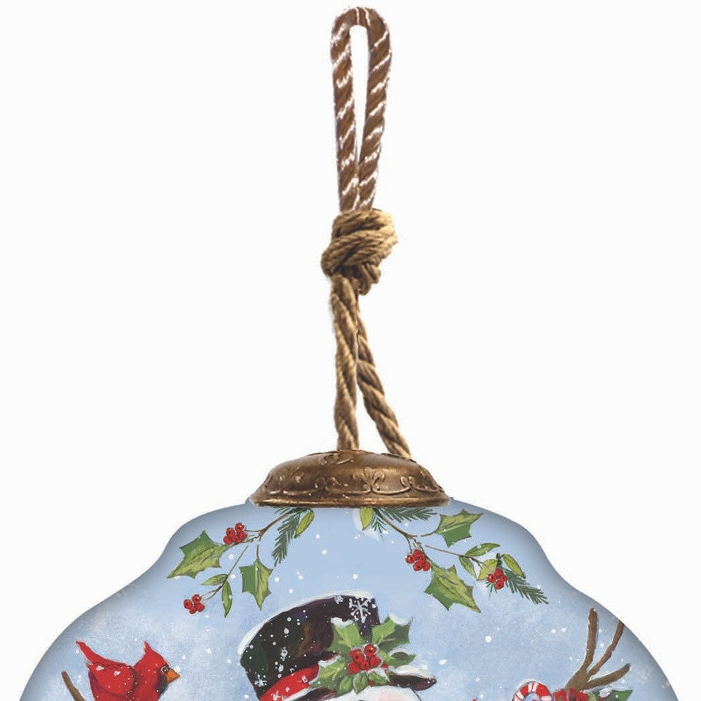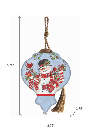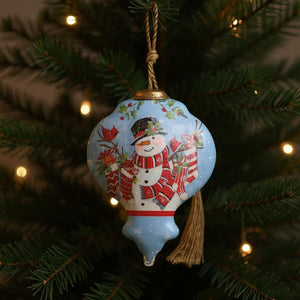 Snowman with Stockings Hand Painted Blue White And Red Glass Finial Ornament