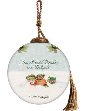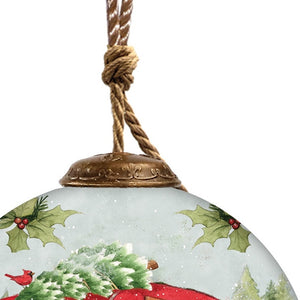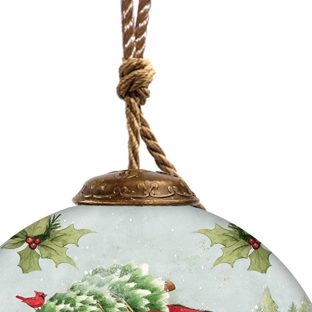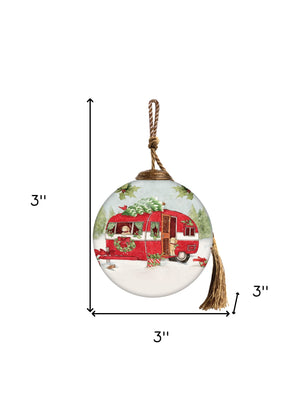 Travel with Red Campe Hand Painted Red White And Green Glass Ball Ornament