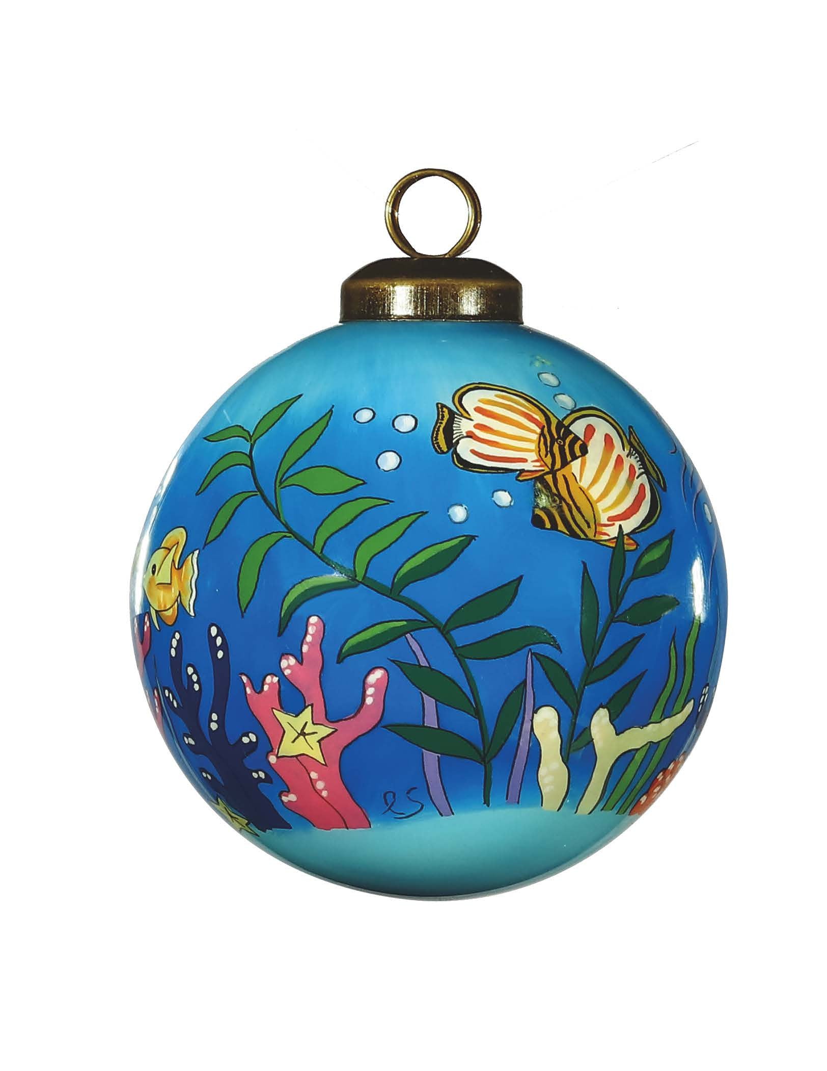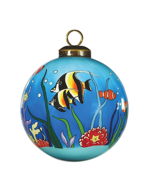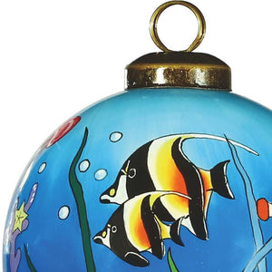 Tropical Fish Hand Painted Green Blue And Red Glass Ball Ornament