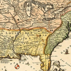Vintage 1718 Map Of New FR Unframed Print Wall Art