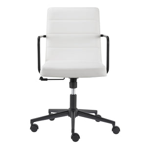 White and Black Steel and Faux Leather Adjustable Swivel Rolling Office Chair