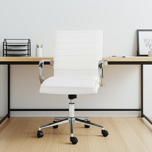 White and Silver Adjustable Height Swivel Rolling Conference Office Chair
