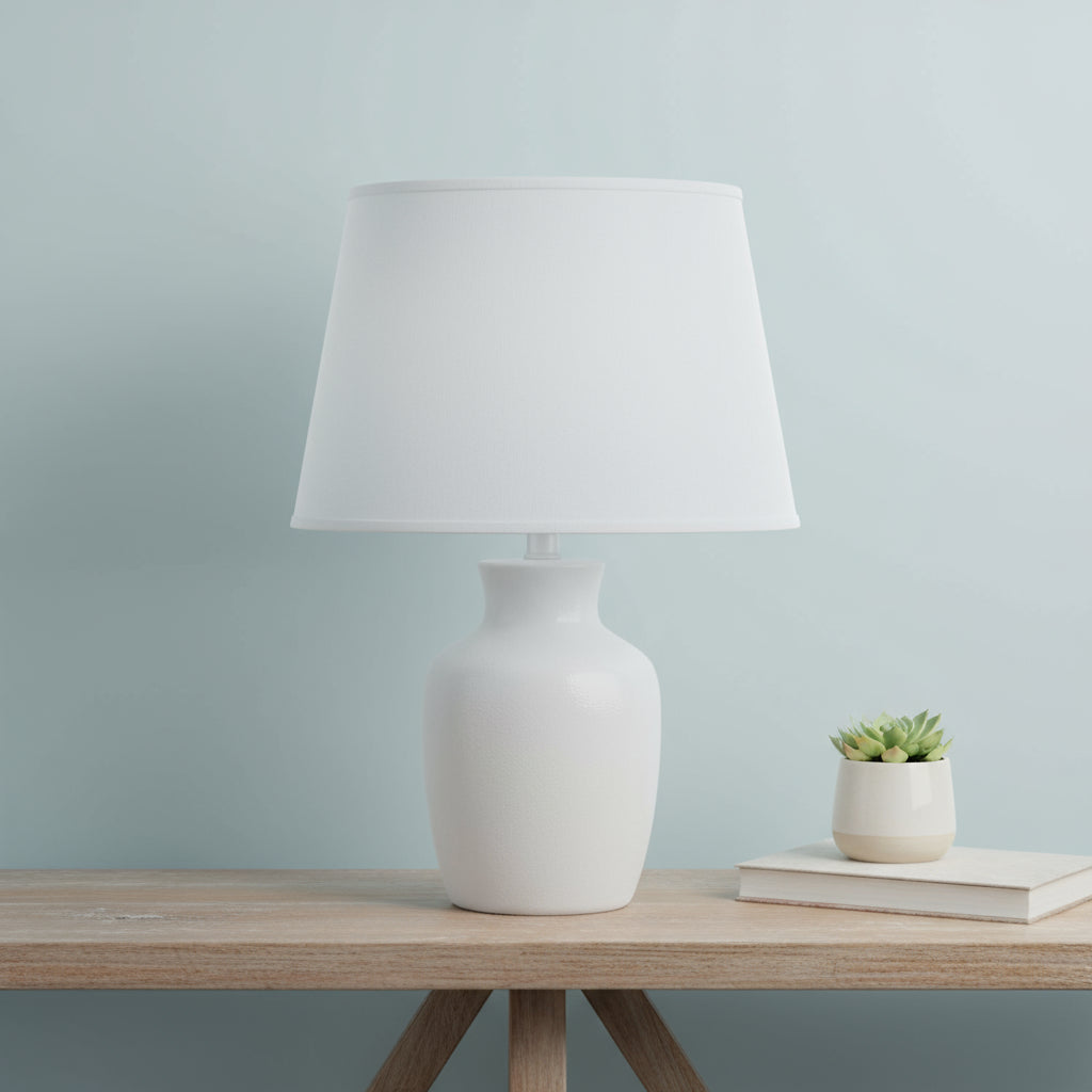 White Faux Silk Plain Drum Lamp Shade