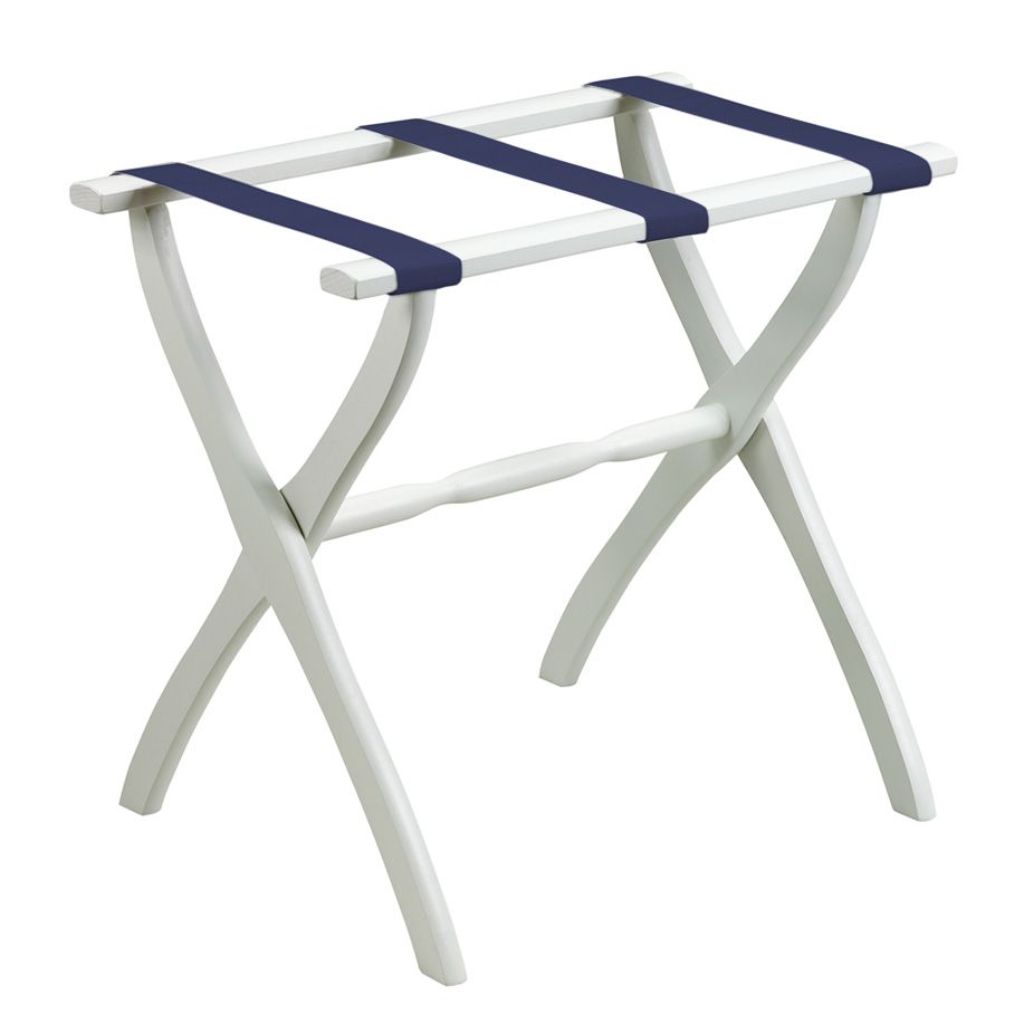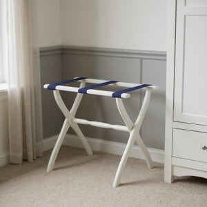 White Folding Luggage Rack With Black Straps
