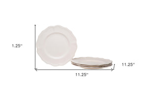 White Four Piece Scallop Stoneware Service For Four Dinner Plate Set