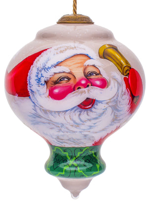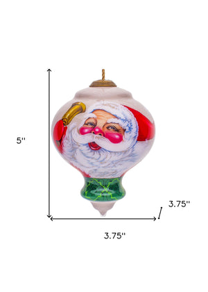 Winter Wonderland Santa Hand Painted Green Red And White Glass Finial Ornament