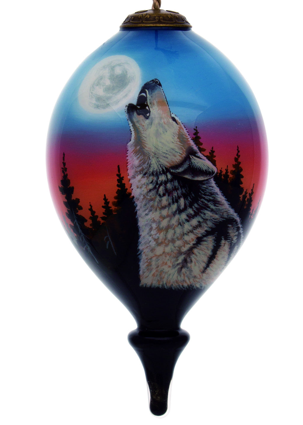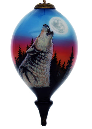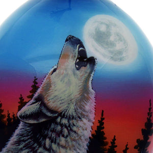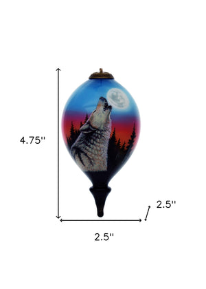 Wolf Hand Painted Black Blue And Gray Glass Finial Ornament